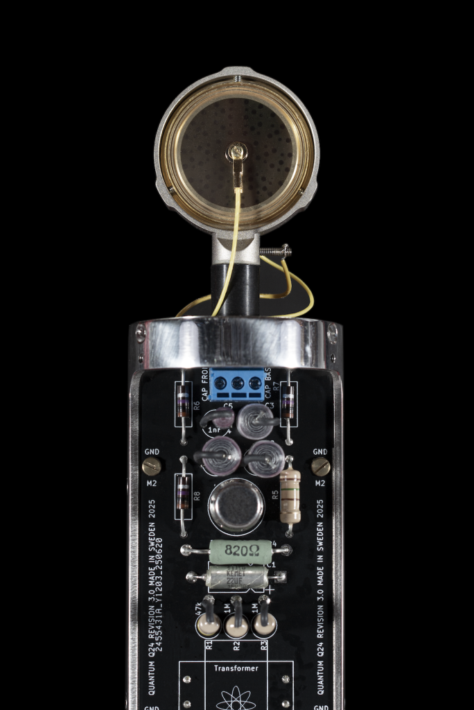 Quantum Q24 erbjuder bara en upptagningskarakteristik, njure, och den saknar finesser som omkopplingsbar dämpsats eller HP-filter. Vladimir har försökt att hitta NOS-komponenter – såsom de RFT-tillverkade kondensatorerna – för vissa tillämpningar. Andra delar, som den specialdesignade M7-kapseln, som utgör själva hjärtat i konstruktionen, och transformatorn, är specialtillverkade.